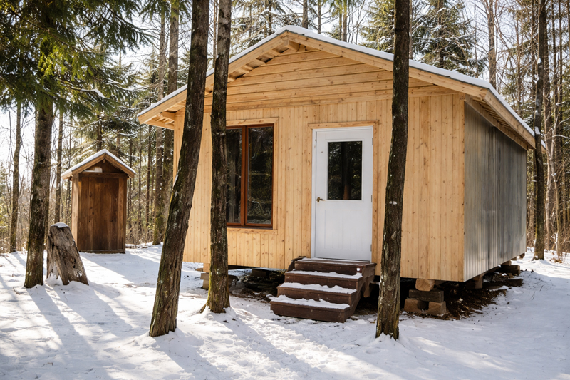Équipement : Poêle à bois, toilette sèche à proximité et vaisselle de cuisine de base.